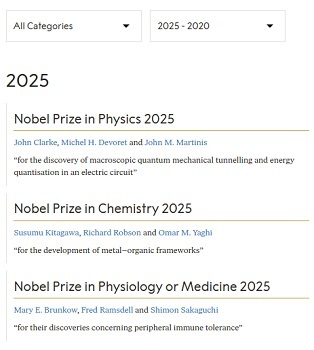 10月9日诺奖官网网页截屏(部分)