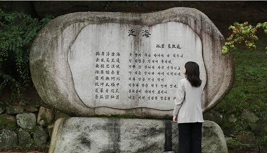 10月16日,游客在韩国庆州的上书庄前欣赏崔致远的代表作《泛海》。新华社记者 姚琪琳 摄