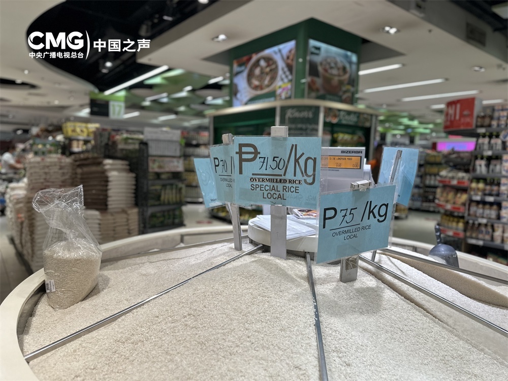 资料图片:2024年2月菲律宾超市的散装大米价格,总台驻菲律宾记者 黄铮铮 摄