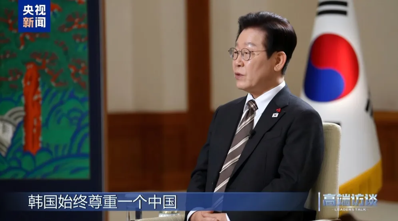 资料图片:韩国总统李在明接受央视采访(网页截屏)