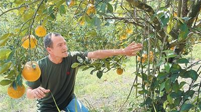 巴西农民在果园查看果树结果情况。本报记者 宋亦然摄